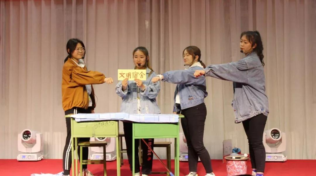 财会系作品《宿舍那些事儿》紧扣我院精神文明建设月主题,讲述一个邋遢女孩在室友们的劝导下逐渐蜕变成女神的故事。