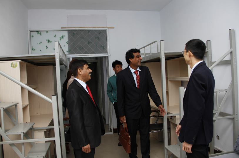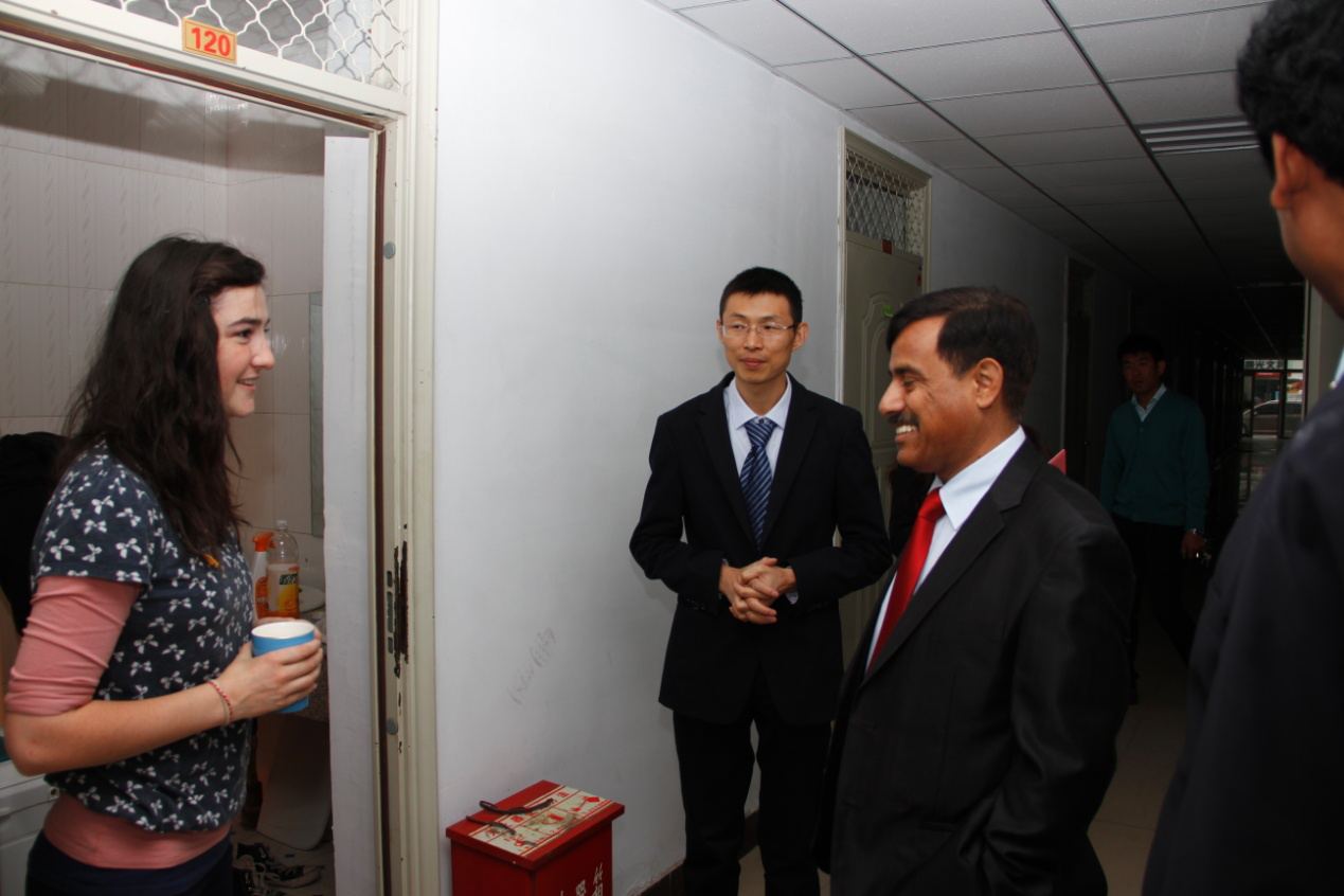 接下来我们去了留学生公寓,公寓里的环境给参赞留下了美好的印象。