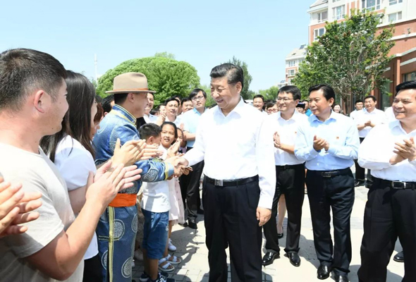 专题要点/ TOP FEATURES盛夏时节的内蒙古,蓝天白云,水草丰茂。7月15日至16日,习近平在内蒙古自治区党委书记李纪恒、自治区人民政府主席布小林陪同下,深入社区、林场、农村、高校、机关单位,看望慰问各族干部群众,就经济社会发展、生态文明建设进行考察调研,实地指导开展“不忘初心、牢记使命”主题教育。