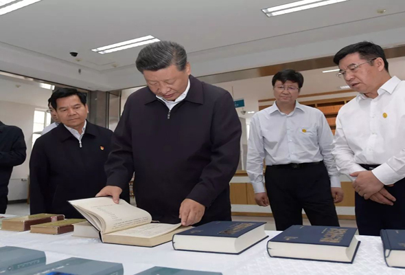 16日上午,习近平在呼和浩特市考察,首先来到内蒙古大学。作为我们党在民族地区创办的第一所综合性大学,为民族地区人才培养和经济社会发展作出了贡献。在图书馆,习近平听取学校建设发展、教学科研、人才培养、思想政治建设等工作情况介绍,察看蒙古语言文学历史成果图书展示。蒙古文古籍展阅室收藏了众多历史文化典籍,记载了蒙古族文化与其他民族文化融合发展的历史。习近平认真听讲解,不时驻足端详。