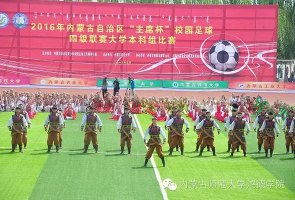 5月25日上午9:30,由内蒙古自治区青少年校园足球工作领导小组主办,内蒙古师范大学承办,内蒙古校园足球协会、内蒙古自治区大学生体育协会协办的2016年内蒙古自治区“主席杯”校园足球四级联赛大学本科组比赛在内蒙古师范大学盛乐校区体育场内盛大开幕。内蒙古师范大学副校长张海峰教授主持开幕式。