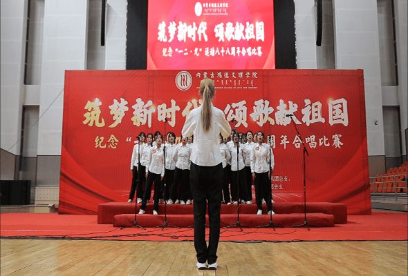 12月8日,内蒙古鸿德文理学院在文体馆举办“筑梦新时代 颂歌献祖国”纪念“一二·九”运动八十八周年合唱比赛。学院党委副书记张雪玉、教育系主任李凤清、学生工作处副处长张玉恒、团委书记兼学生工作处副处长刘维权及相关职能部门负责人出席活动。