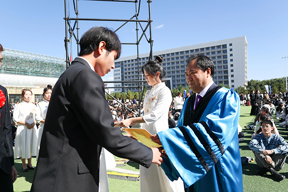 学生工作处处长许艳军代齐学斌先生为“齐学斌奖学金”获得者颁奖。