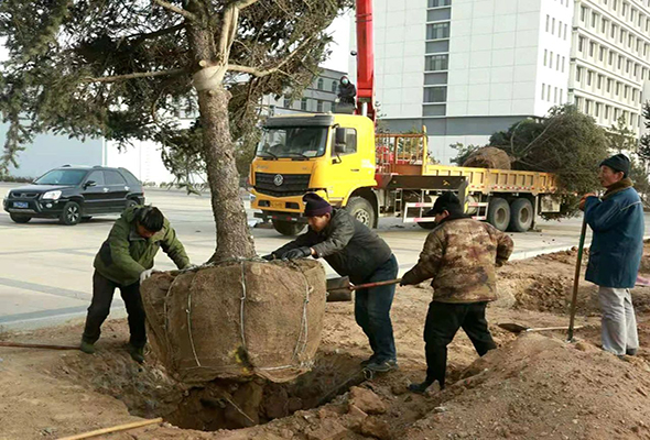 1月31日,内蒙古鸿德文理学院西区驶入好几辆带着长吊臂的大卡车,车上满载着油松和云杉。院长周玉树、院长助理周伟、办公室副主任张玉恒、总务处基建设备科科长侯亚峰、总务处水电科科长古金毛和总务处部分教职工到现场参与植树。