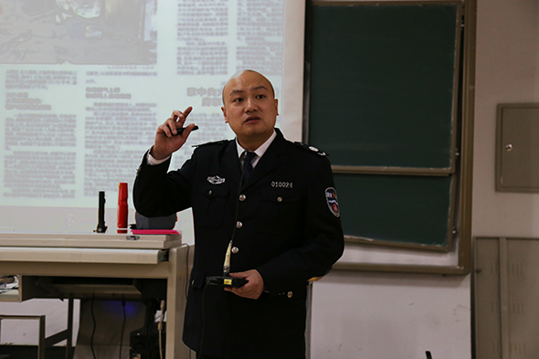 章波主任在讲座中从火灾、踩踏、地震等灾害的各个方面进行了细致入微的讲解。结合在工作生活中用电、用气、用火的知识,为到场的师生普及了火灾的基本知识、灭火的基本原理以及在火灾中逃生、自救的技能。章波主任还介绍了如何利用灭火毯、防烟面罩、多功能手电筒等工具来防护火灾事故、保障生命安全。章波主任一再强调安全知识对保障生命的重要性,对安全知识多方面的了解不仅是对自己负责,更是对生命的尊重,希望大家能够多一份责任,少一份悔恨。