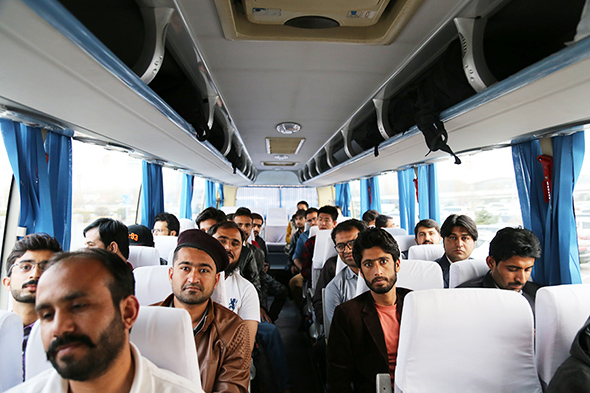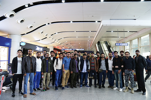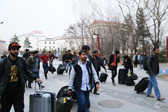 此行23名留学生4月7日便从巴基斯坦俾路支省首府奎塔市乘坐航班出发,转辗巴基斯坦卡拉奇市直飞我国首都北京,4月9日晚才飞抵呼和浩特市。鸿德学院派出外事办干事王志刚亲自前往北京机场接机,并将留学生们安全护送回学校。留学生们走下飞机,双脚踏上了呼和浩特的土地,对异国他乡的一切都充满了好奇,不时地拿出手机开心的与朋友们拍照留念,热烈地讨论着眼前新鲜的事物。在乘坐大巴车返校途中,留学生们迫不及待的向迎接他们的老师和学生们询问了解鸿德学院的情况。