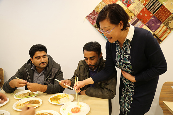 傍晚时分,鸿德学院巴基斯坦风味餐厅传出了美食的香味,餐厅的主厨来自巴基斯坦和印度,他们为留学生们准备了丰盛的家乡美食,让在异国他乡的留学生们十分感动。