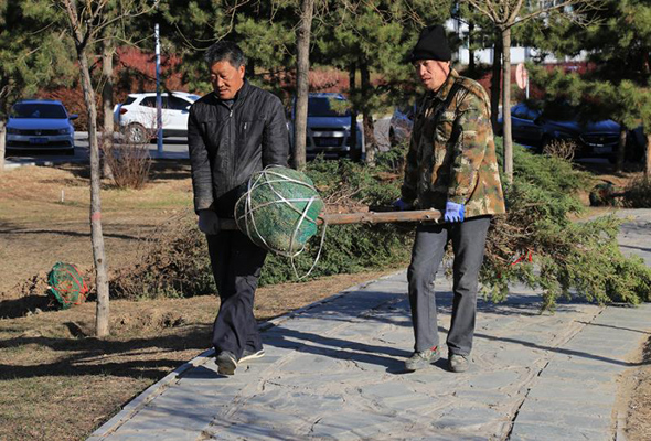 当日傍晚,鸿德学院参与绿化建设的师生在园林师傅的指导下,认真细致的测量树坑的间距,从挖土、种树再到填埋、浇水,每个细节都一丝不苟。总务处处长焦建伟在向记者谈起校园绿化建设工作时,黝黑的脸庞流露出欣慰的笑容,他说:“每年的春季、冬季,我们都会开展校园绿化工作,按照季节特点栽种不同的树种。你们看,这些年的建设,我们的校园已经有了高高的松柏、绿油油的草坪、鲜花盛开的桃林……看到它们就像自己的孩子长大了一样,心里面特别的高兴!”