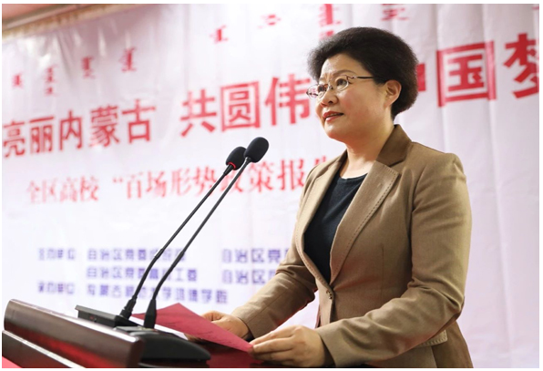 报告会结束后,内蒙古师范大学党委书记黄雅丽同志做了总结讲话。黄雅丽书记提出,希望鸿德学院全体师生认真学习,深刻领会李主席报告的精神实质,正确把握新时代的丰富内涵,把李主席的殷切嘱托内化于心,外化于行。全院师生要以习近平新时代中国特色社会主义思想为指引,增强“四个意识”,坚定“四个自信”,不忘初心,牢记使命,守正创新,锐意进取,努力开创鸿德学院的崭新局面,在为实现中华民族伟大复兴中国梦的宏伟征程中放飞梦想、书写人生华章。