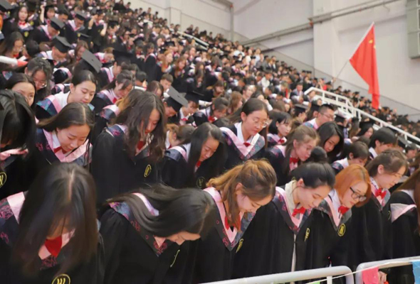 2019届全体毕业生怀揣着对祖国的热爱和建设美好祖国的憧憬,饱含深情地演唱《我和我的祖国》。声声高昂的歌曲为15级毕业生四年的大学生活画上了圆满的句号,2019届毕业典礼暨学位授予仪式在嘹亮的歌声中落下帷幕。