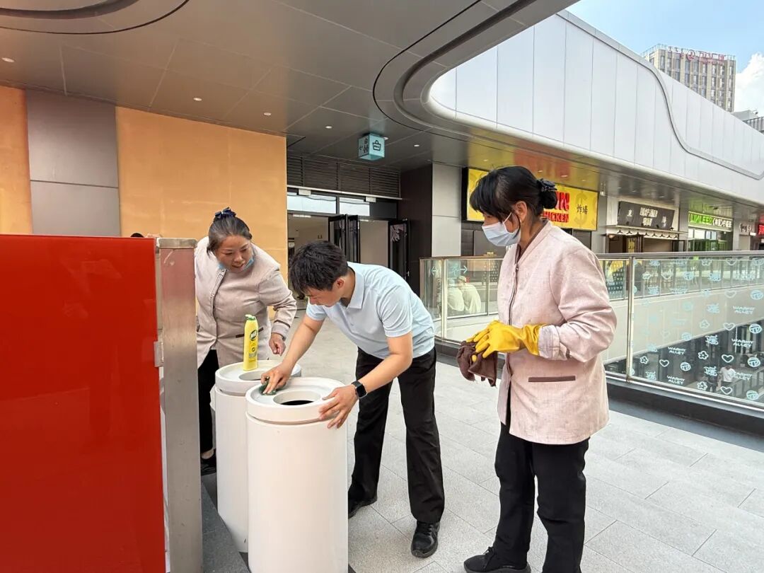 在一切步入正轨以后,我每天的工作内容就是督促保洁,更换垃圾桶,时刻清理地面动态垃圾,保持地面干净擦拭扶梯,客货梯墙面、客、货梯地面干净,营造一个干净卫生的环境。目的是为顾客营造一个良好的氛围,同时我们在卫生间也配备了暖心物品,例如牙线、梳子、棉签、护手霜以及女性用品,做的这些都是因为我们注重品质,致力于服务。