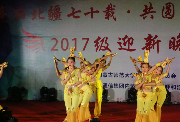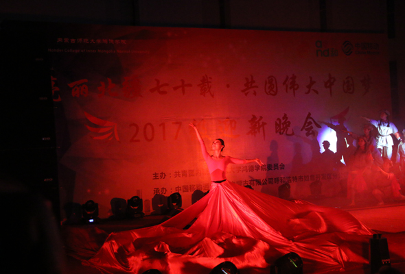 “青春是新生的力量,为理想奋斗、为信念执着”,为突出学生们的特色才艺,展现年轻人的张扬个性与青春活力,9月28日晚上,我院举办的“亮丽北疆七十载•共圆伟大中国梦”――2017级迎新晚会在文体馆拉开帷幕。本次晚会由共青团内蒙古师范大学鸿德学院委员会主办,中国移动通信集团内蒙古有限公司呼和浩特如意开发区分公司承办,现场节目精彩纷呈,高潮迭起。我院党委书记卢凤龙、副院长王新刚、组织人事处处长乔慧春、学院办公室副主任张玉恒、学生处周玉森副处长、总务处处长焦建伟、安全处处长梁和平、以及各系(分院)教师和2017级新生观看了此次晚会。