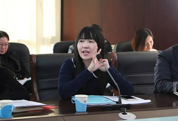 之后,外语系基础教研室主任陈茜做工作经验交流。陈主任从专业学科建设、专职教师队伍建设以及制度建设展开报告,介绍了外语系教研室深化改革的方式:“三课合一”,即期末测试加强口语考核、鼓励学生参加社会实践、教师紧抓教学质量。同时,她介绍了外语系教师聘请的制度和完善教学管理制度的方法。