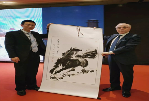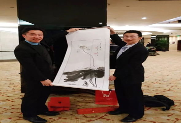 此外,唐俊主任向巴基斯坦驻华大使馆高润生秘书赠送了由艺术设计系李兴林老师创作的水墨画,以此对他多年来积极推动我院与巴基斯坦教育交流做出的贡献表示衷心的感谢。