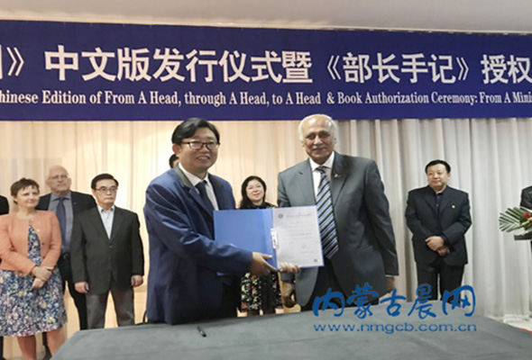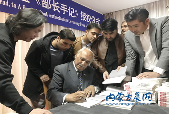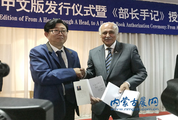 当天,《首脑之间》的作者艾贾祖丁从巴基斯坦飞抵呼和浩特,除出席其著作《首脑之间》中文版的发行仪式外,还带来了他的另一本书《部长手记》。